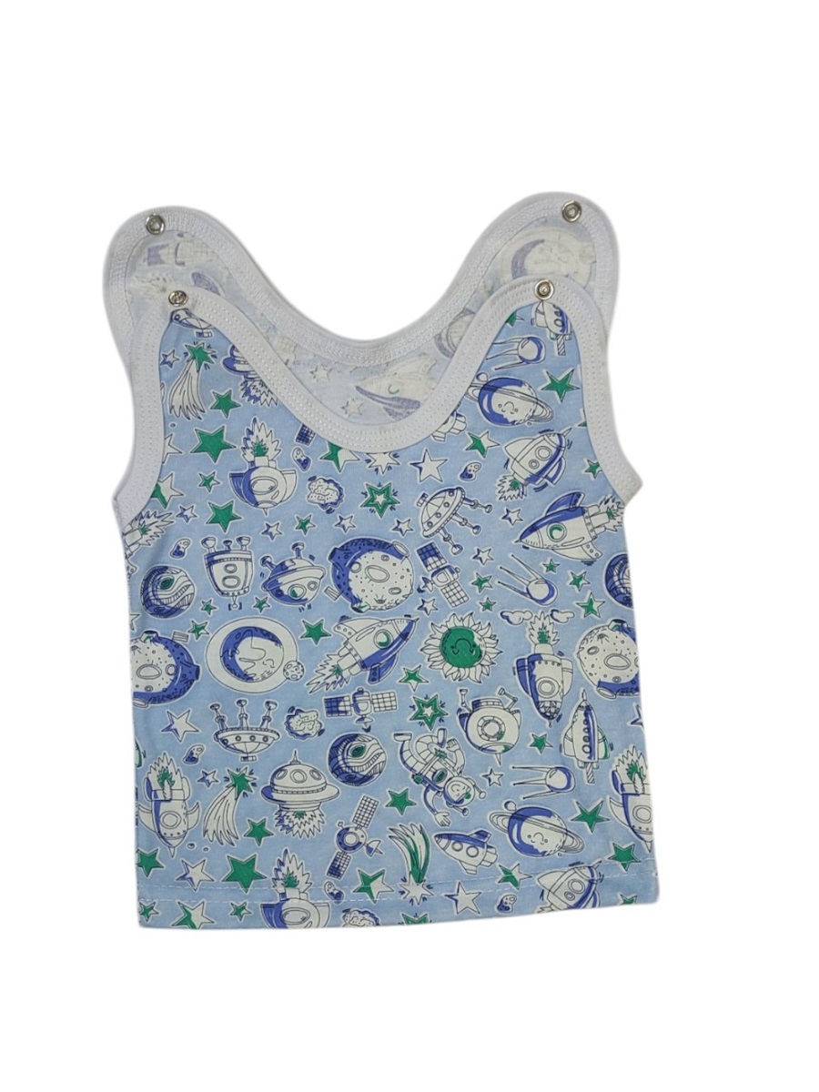 Маечка детская выполнена из 100% хлопка, с кнопочкой на каждом плече.