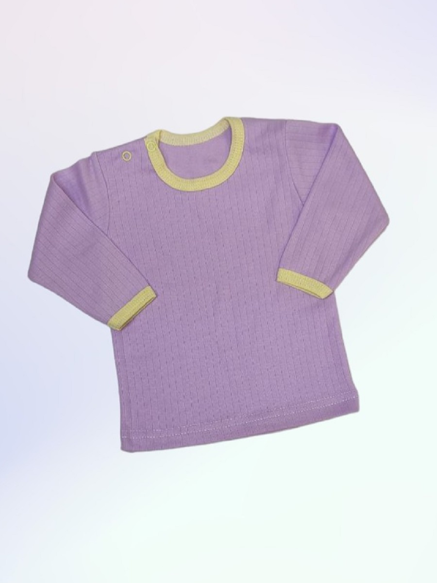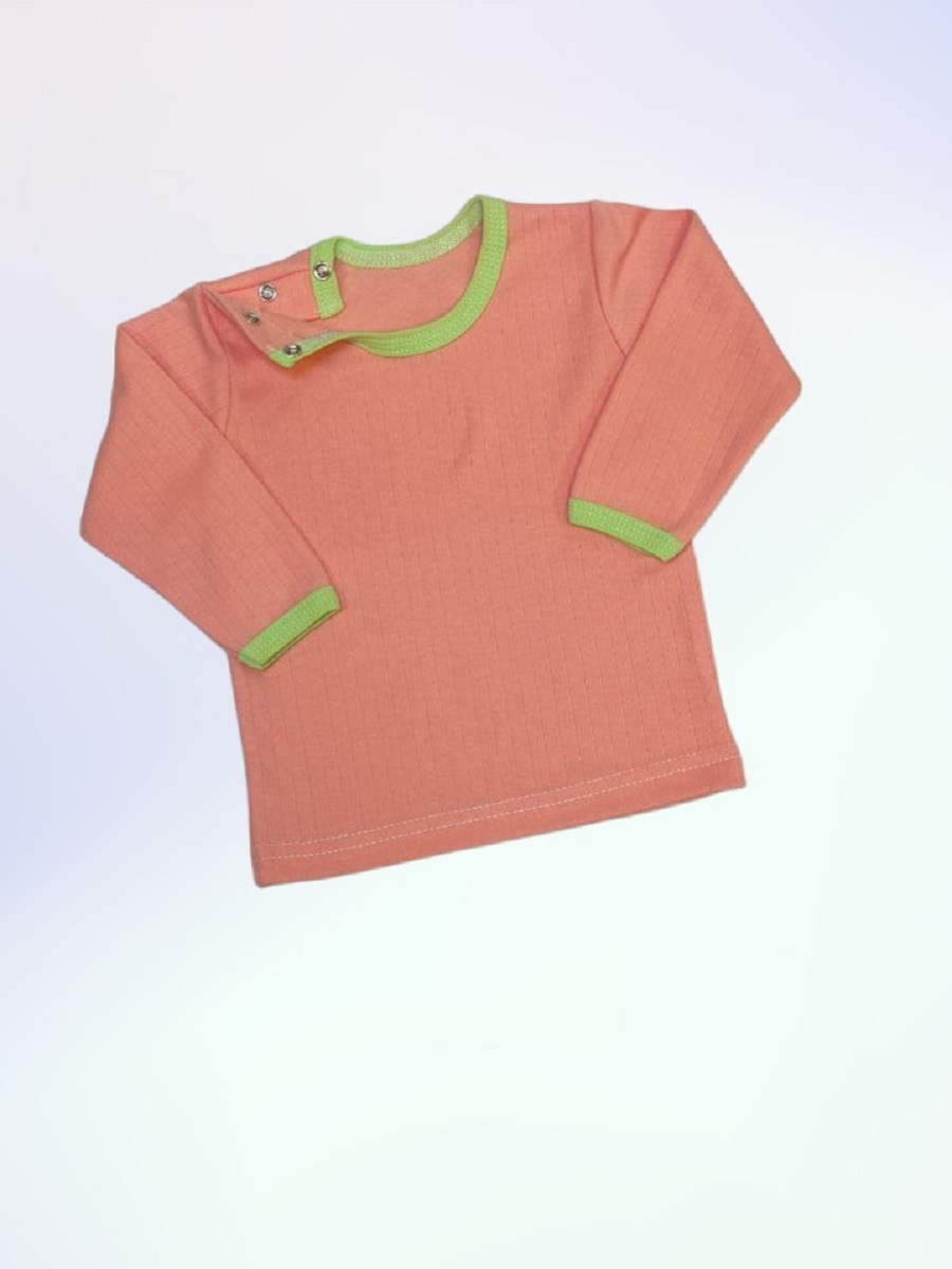 Кофточка однотонная с длинным рукавом, с двумя кнопочками на одном плече.