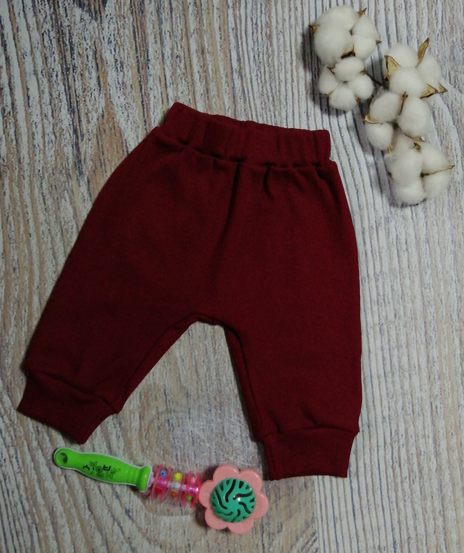 2. Штанишек на широком поясе с резинкой, снизу на манжетах.