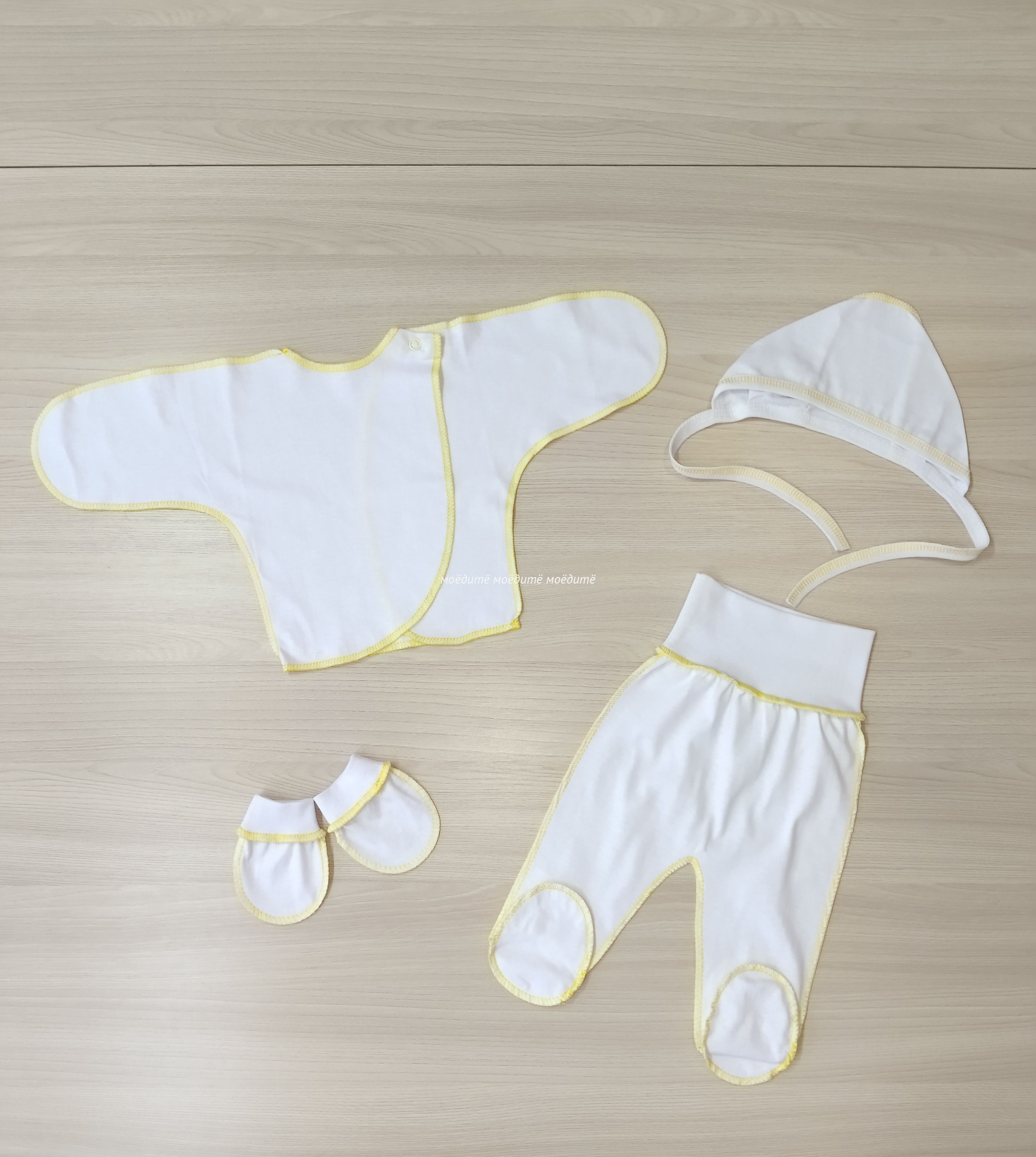 "МоёДитё" комплект на выписку из 4-х предметов белый + жёлтый КП025 "Магнолия" ? СПБ